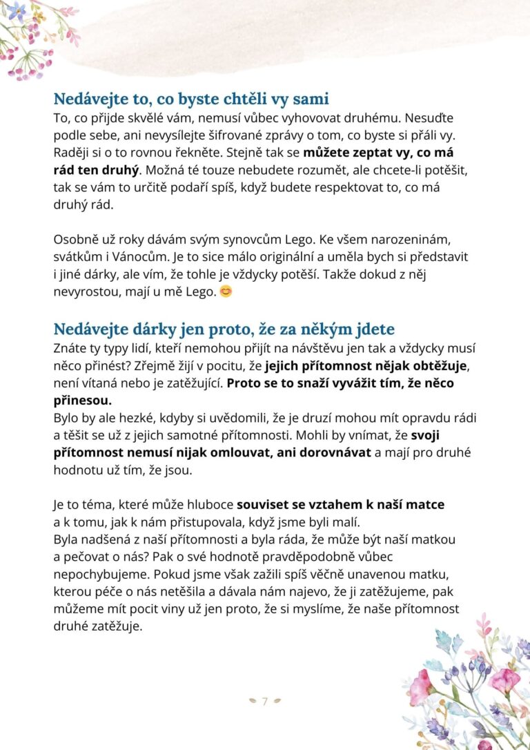 Často jsem v sobě řešila, jestli jsem nevděčná, když se mi dárek nelíbí nebo když ho nechci přijmout. A přesně v tom mi e-book obrovsky pomohl. Ujistil mě, že to není nevděk a ukázal mi, že i odmítnutí může být laskavé, jasné a upřímné.