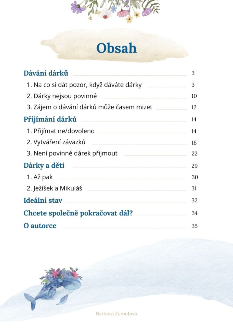 Pokud kolem dárků často cítíte napětí nebo nejistotu, tenhle e-book vám pomůže udělat si jasno v sobě i v komunikaci s druhými. Je velmi praktický a dokáže hodně ulevit už jen tím, že se na celé téma podíváte s větším odstupem, který není zatížený emocemi, které v našich vztazích kolem dávání dárků máme.